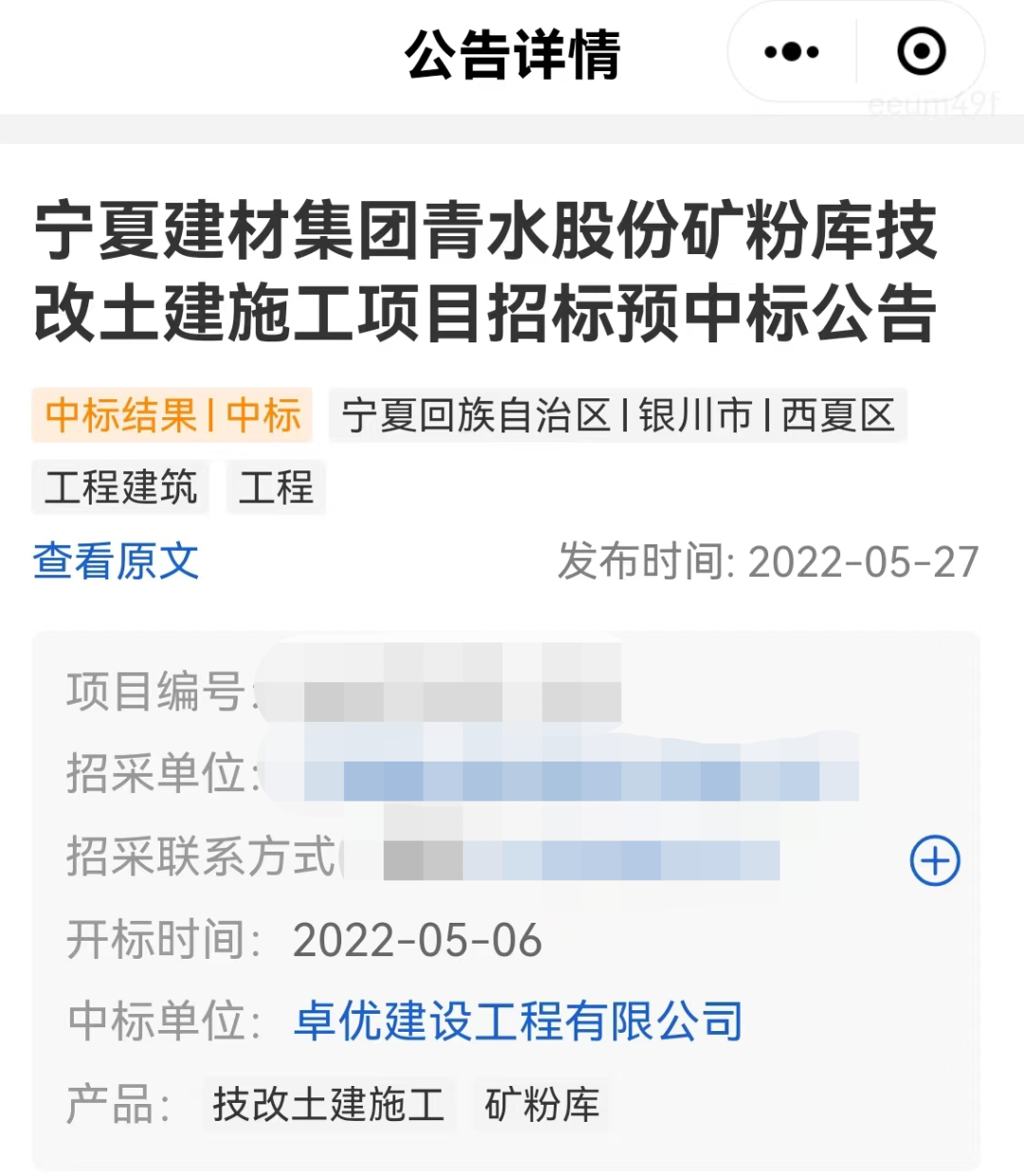 宁夏建材集团青水股份矿粉库技改土建施工项目